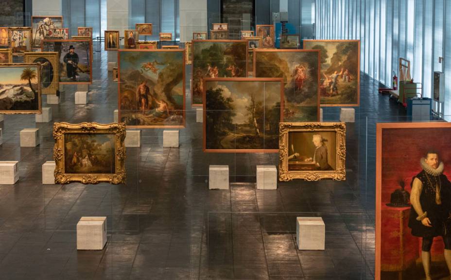 Essas estruturas ficam expostas em fileiras amplas no segundo andar, sem nenhuma divisória. Dessa maneira, o visitante se sente livre para percorrer o espaço expositivo da forma que quiser, sem um roteiro pré-definido. A ideia é que as pessoas se sintam em uma floresta de obras que parecem flutuar.