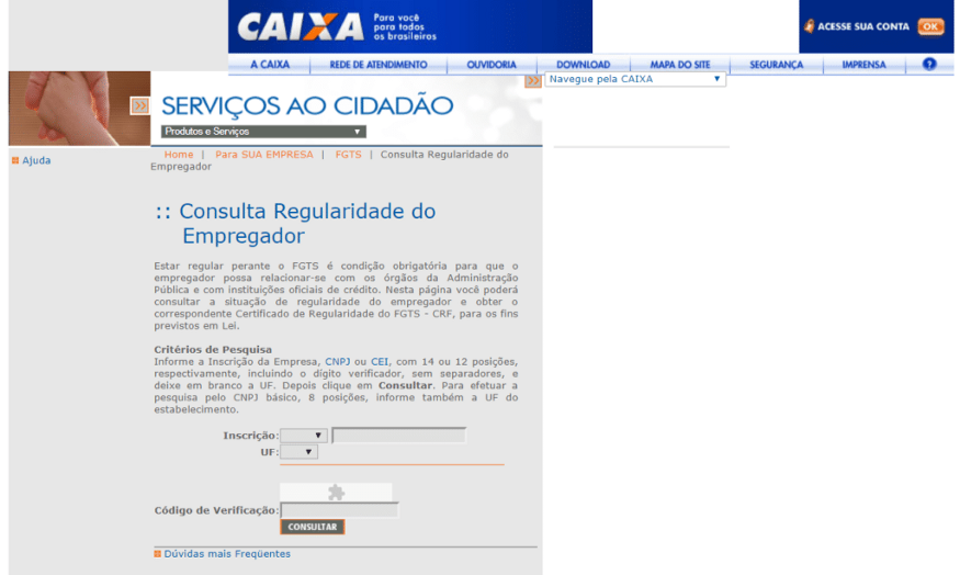 A Certidão de Regularidade do FGTS é um documento exclusivamente emitido pela Caixa Econômica Federal, que é um banco 100% estatal. A CRF é obrigatória para realizar o saque de FGTS inativo, comprovar inexistência de vínculo empregatício e para comprovar que determinado contribuinte não possui pendências relacionadas ao benefício.