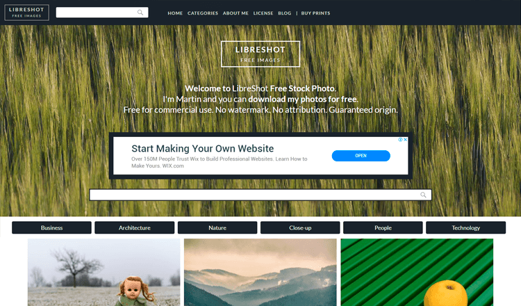 Libreshot é outro buscador de imagens de stock gratuitas. Sua livraria contém centos de fotos de alta qualidade para uso comercial ou pessoal, todas se encontram sob licença CC0 1.0 Universal, o que quer dizer que a pessoa que criou o trabalho o cedeu ao domínio público com todos seus direitos sobre ele em qualquer parte do mundo.